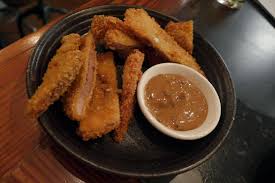 1. Crispy pork schnitzel, spiced beer mustard w/ Pinot Noir-Gamay Noir, Wildebeest 2012 – Okanagan Valley, BC