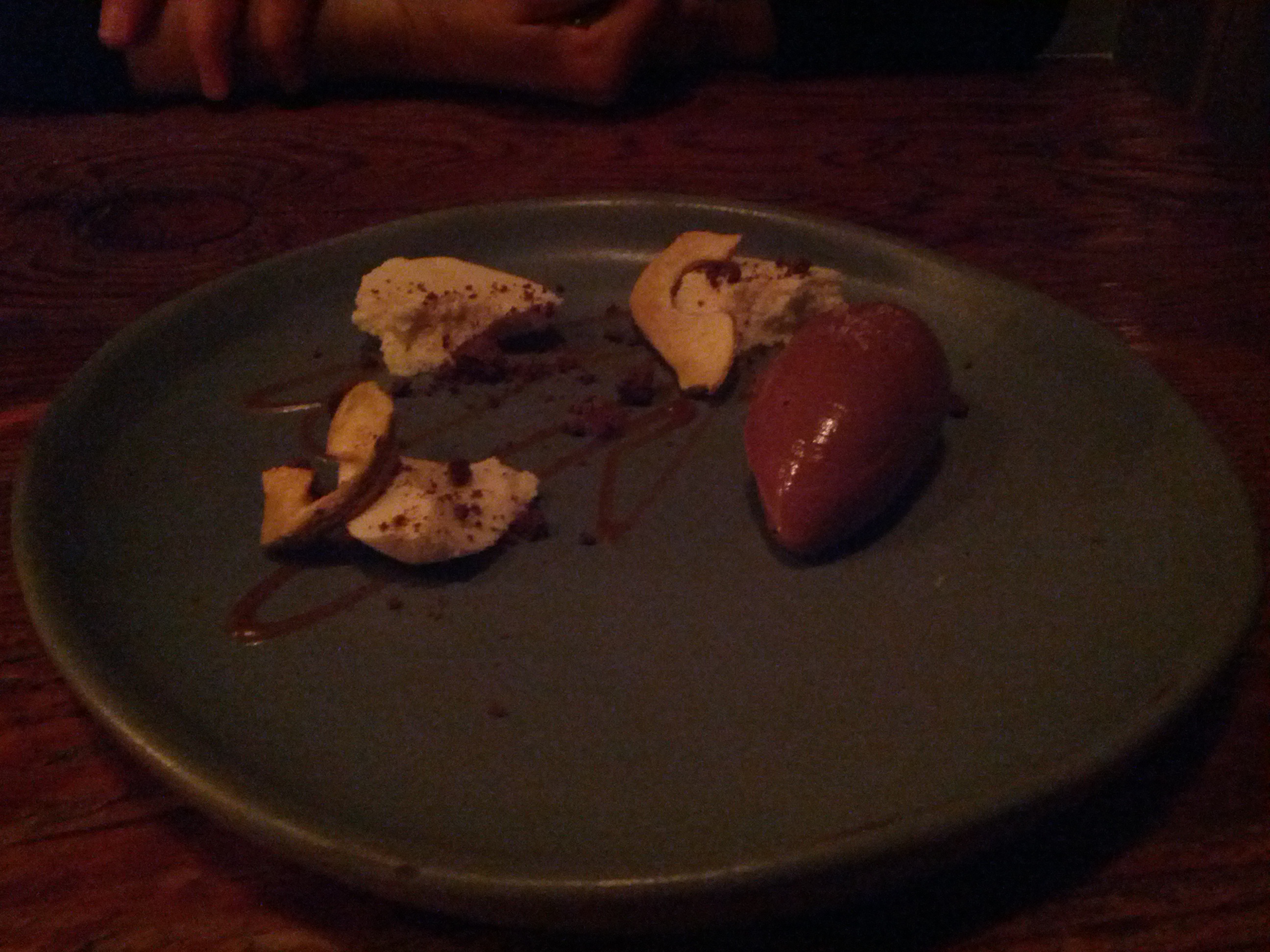 5. Pear mousse, chocolate sorbet, chewy pear, dehydrated chocolate mousse, salted caramel w/ Pentage Ice Wine 2011 – Skaha, BC