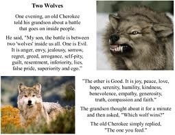 I think its in these ordinary moments, the way we act and react that become the defining overtones of our character. We ALWAYS have a choice in any given situation and it’s really up to me if I remain focused on the good or allow the shitty irritabilities to wreak havoc. There is an old Cherokee story that illustrates this well: