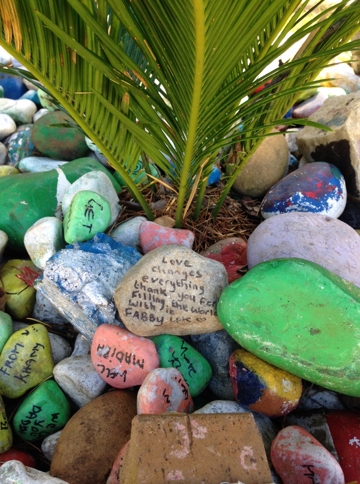 It hard to believe that exactly one week ago I was standing in front of the home Nelson Mandela lived in at the time of his passing in Johannesburg S. Africa. It was an interesting day, there was a tangible love hanging about. Directly in front of his home scattered amongst some garden beds were hundred of painted rocks, signed with messages of love from people whom had come to pay their respects from all over the world.