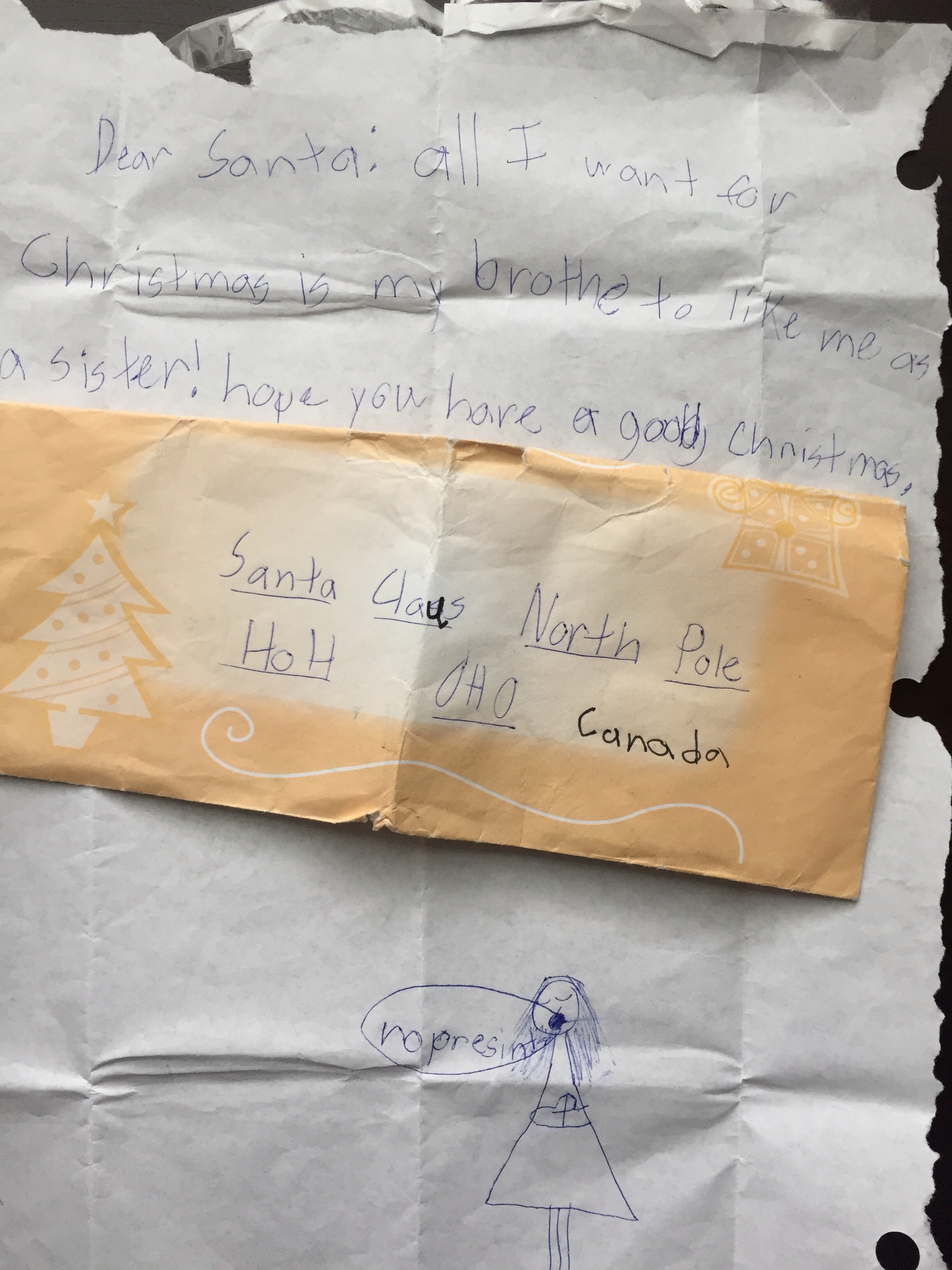 All I want for Christmas is my brother to like me as a sister. Hope you have a good Christmas.